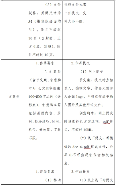公司在籍在校员工均可参加。其中平面类、文案类不超过2人/组;短视频、互动类、广播类不超过3人/组;影视广告、微电影广告、动画类、策划案类、UI类、科技类、营销创客类不超过5人/组。指导教师人数:平面类、文案类不超过1人/组;其他类别不超过2人/组。