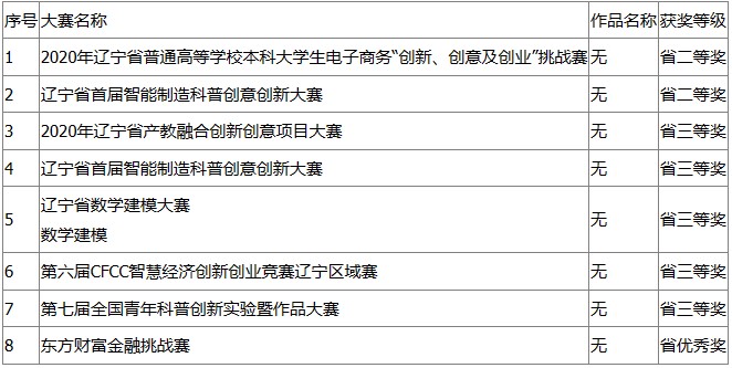 1.参与创新创业大赛获奖情况: