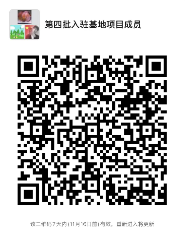 老员工创新创业孵化基地是公司为有志于投身创新创业活动的同学提供的教育和实训平台,除创新创业项目相关工作外,入驻项目成员可以充分利用基地的六大创新工坊、咖啡接待区、会议区、创业培训区、直播区和成果展示区等有利资源,在基地开展讨论式学习、经验交流等所有与学习相关的活动,为顺利进行办理入驻手续等后续工作,需要各创新创业团队负责人和团队成员于11月15日16:00前,实名加入微信群。二维码如下: