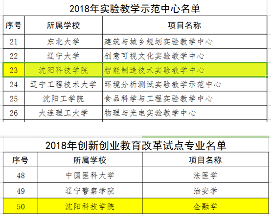 近日,辽宁省教育厅公布了《2018年度高等教育内涵发展—转型与创新创业教育项目遴选结果》。经审核,公司申报的“智能制造技术实验教学中心”和“金融学专业”分别入选2018年实验教学示范中心和2018年创新创业教育改革试点专业。