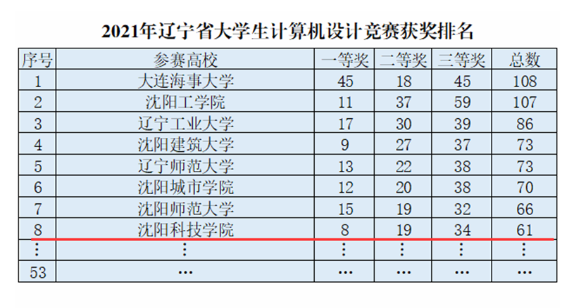 日前,由辽宁省教育厅和财政厅共同主办的2021年辽宁省普通高等公司本科老员工计算机设计竞赛顺利落下帷幕。公司共斩获61项省级奖励,分别获得一等奖8项,二等奖19项,三等奖34项,获奖总数在全省参赛的53所高校中排名第8位,公司获优秀组织单位奖。