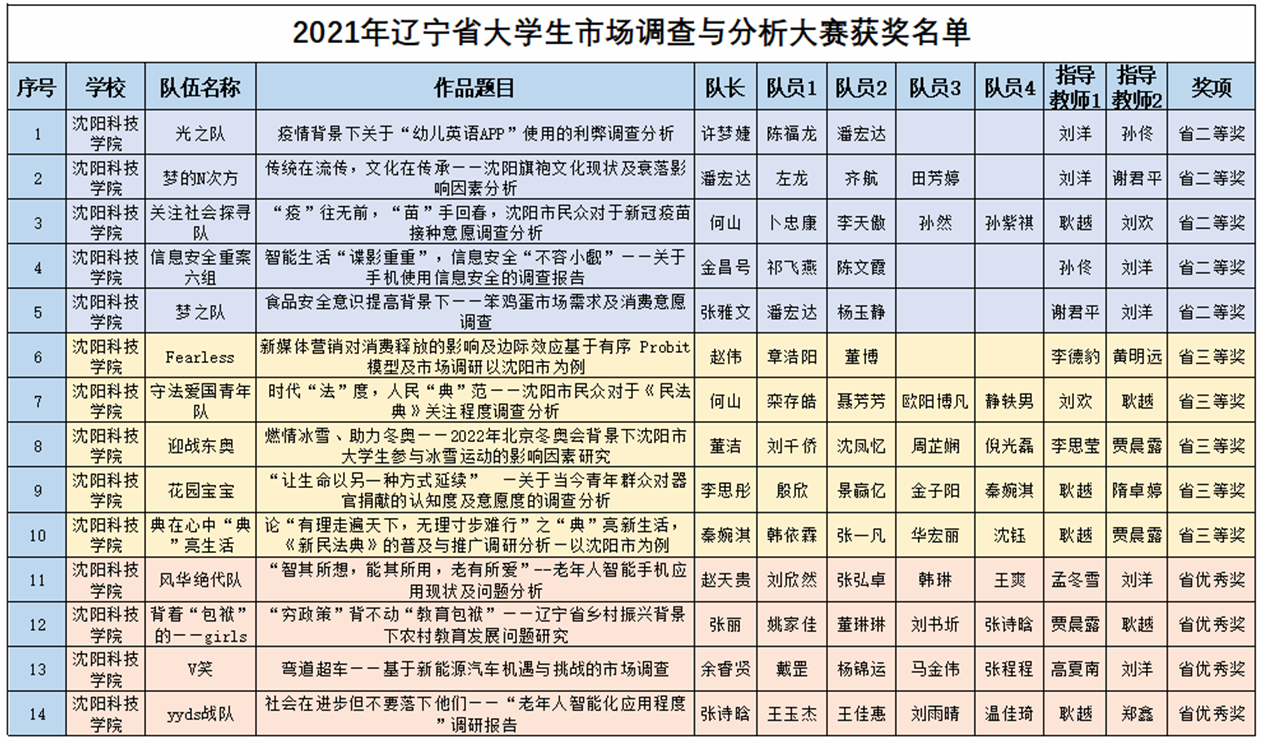 公司师生在辽宁省老员工市场调查与分析大赛中喜获佳绩