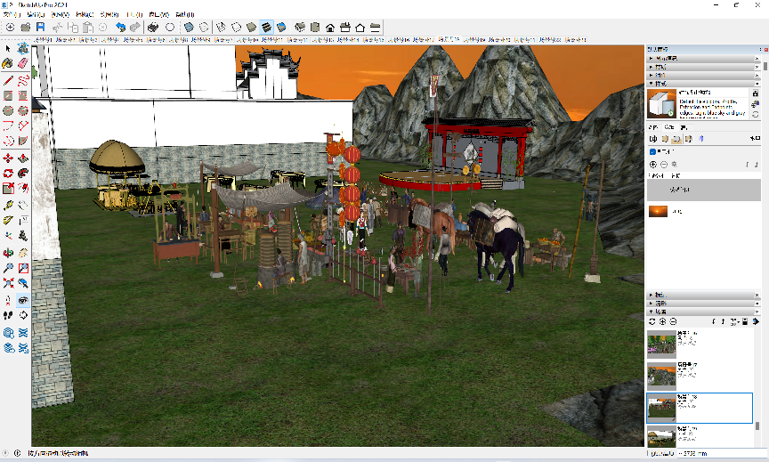 本作品结合数字化建筑设计概念,使用Sketchup 2022等软件渲染制作而成。为我们展现了一个古色古香、舒适悠然、陶冶身心的隐庐镇。它承借大自然赋予的原生态景观,想我们展示了故事人们生活的各种场景,娓娓道来的讲述着那些感人的至深的故事。制作从大框架开始,然后逐步深化细化,先创建整体框架结构,而后深化细节,做局部等相关内容,最后加入一些装饰,如花,木等内容,不断的反复调整与优化《隐庐镇》的整体模型。
