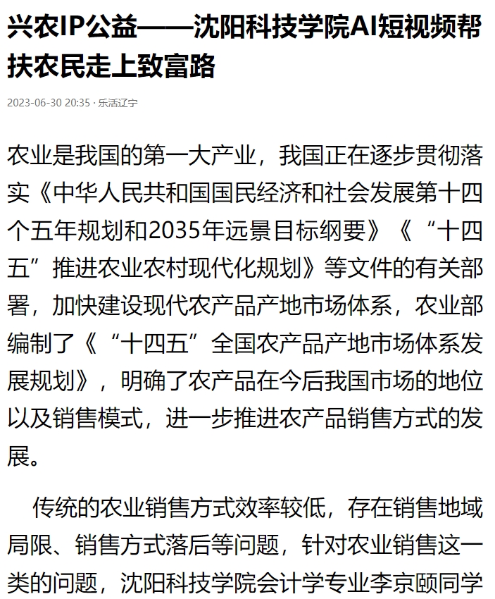 兴农IP公益——公司AI短视频帮扶农民走上致富路受到今日头条报道