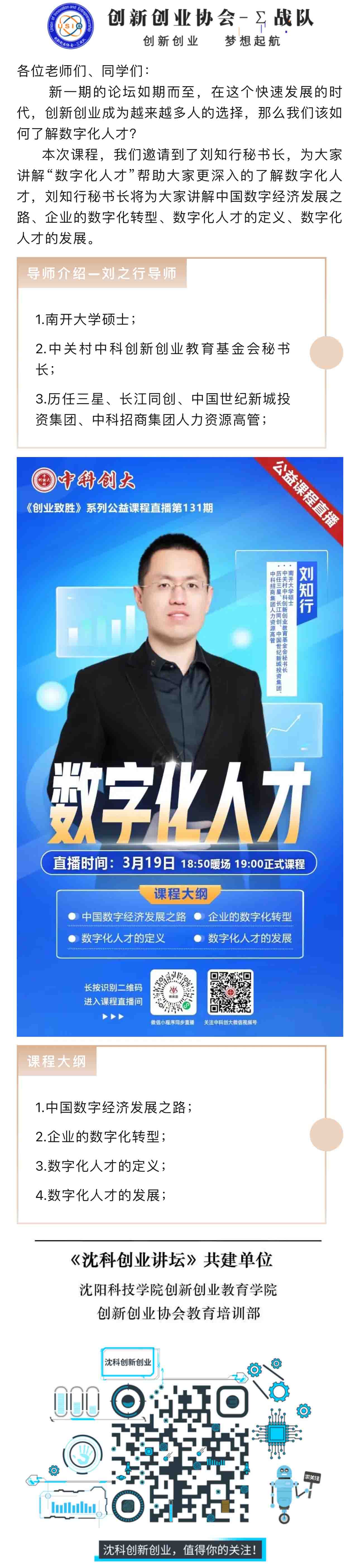【沈科创业论坛】特刊直播第七十期