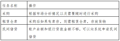 C、民间贷款规则:民间贷款可以随时申请,即在运行过程的任何时间,都可以申请民间贷款,但民间贷款计息为固定利息,借的时间越长,利息越高,竞赛结束时,要求归还全部民间贷款本息。